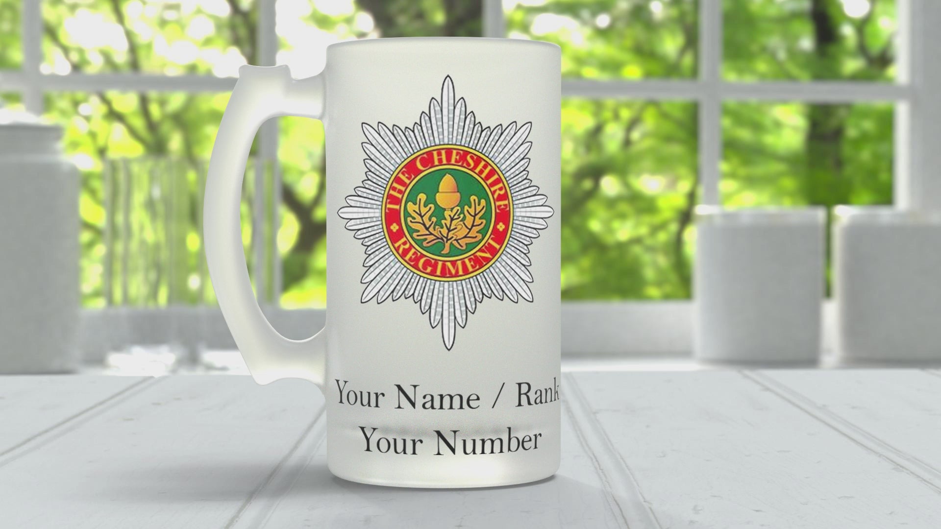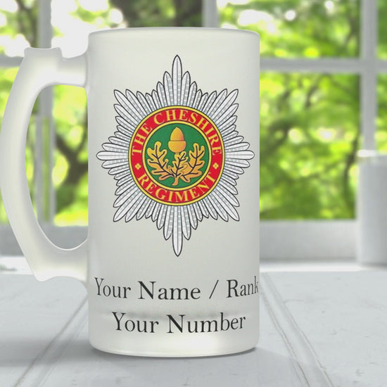 Honour your service with this distinguished Cheshire Regiment personalised tankard. Crafted to commemorate your connection to this historic regiment, each piece is customised with your name or chosen text, making it a meaningful keepsake for mess nights, reunions, or personal display. The robust design ensures durability through years of use, whilst the engraved detailing captures the pride and tradition of the Cheshire Regiment. An ideal gift for serving personnel, veterans, or regimental enthusiasts seeking a functional tribute to their military heritage.