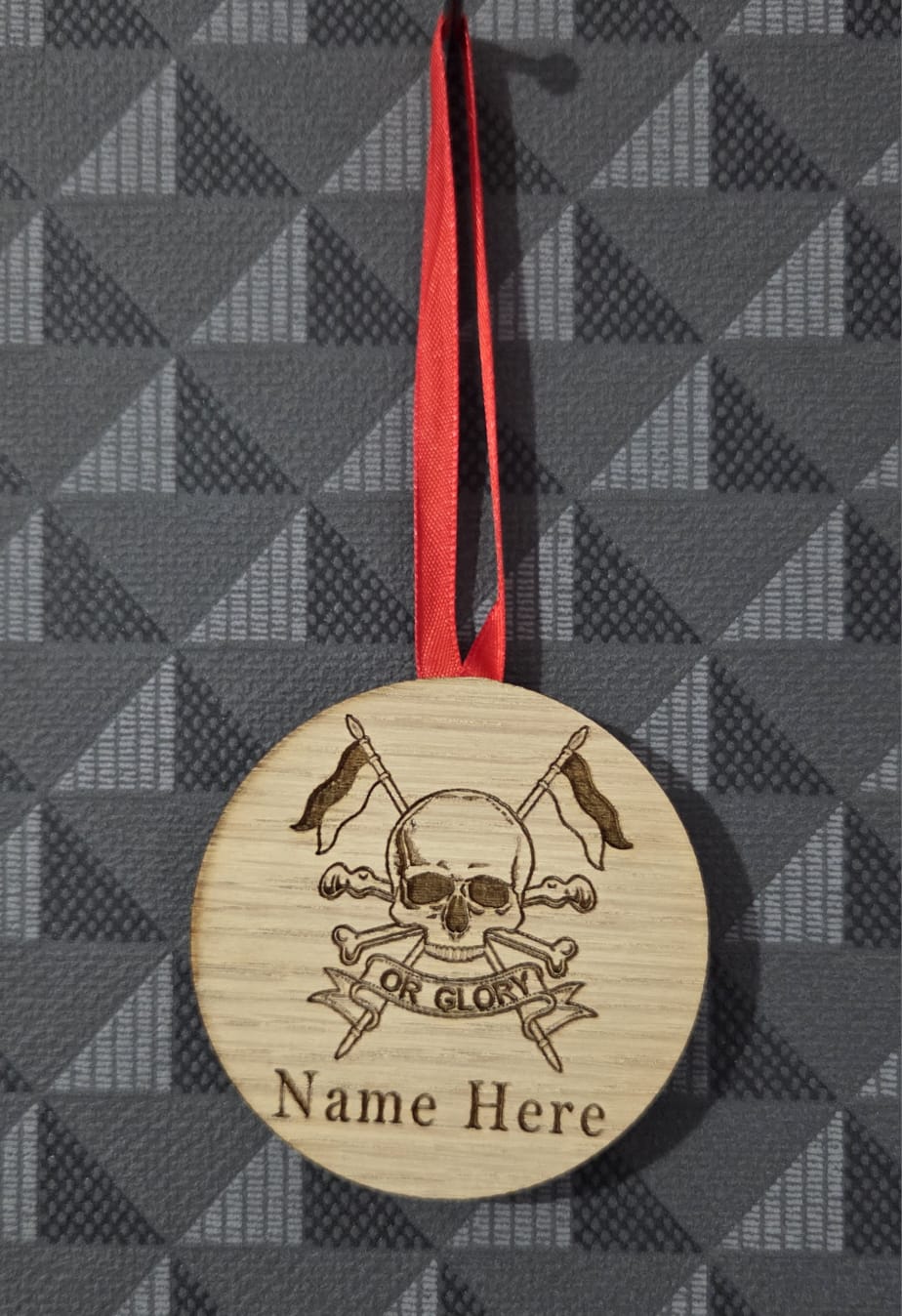 This wooden lest we forget poppy ornament serves as a personalised tribute to those who served. With the option to engrave any regimental badge and details, this ornament offers a unique and meaningful way to remember loved ones and show support for those who have served.