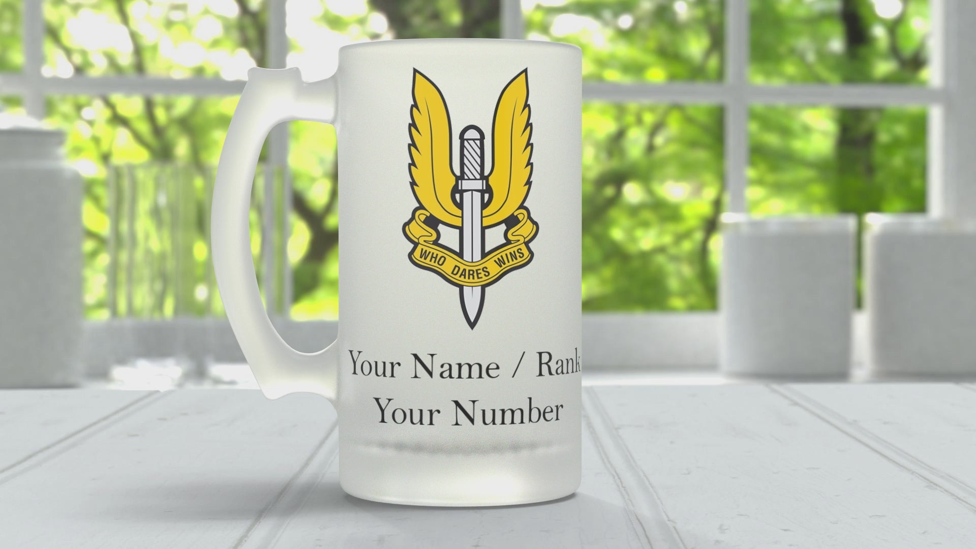 Crafted for those who serve with distinction, this personalised tankard honours the legacy of the Special Air Service. Each piece is customised with your chosen details, creating a meaningful keepsake that celebrates military pride and camaraderie. Constructed from quality materials built to withstand years of use, this tankard serves as both a functional drinking vessel and a distinguished tribute. Perfect for commemorating service, marking milestones, or gifting to fellow personnel who understand the significance of the SAS. A timeless addition to any collection that demands respect.